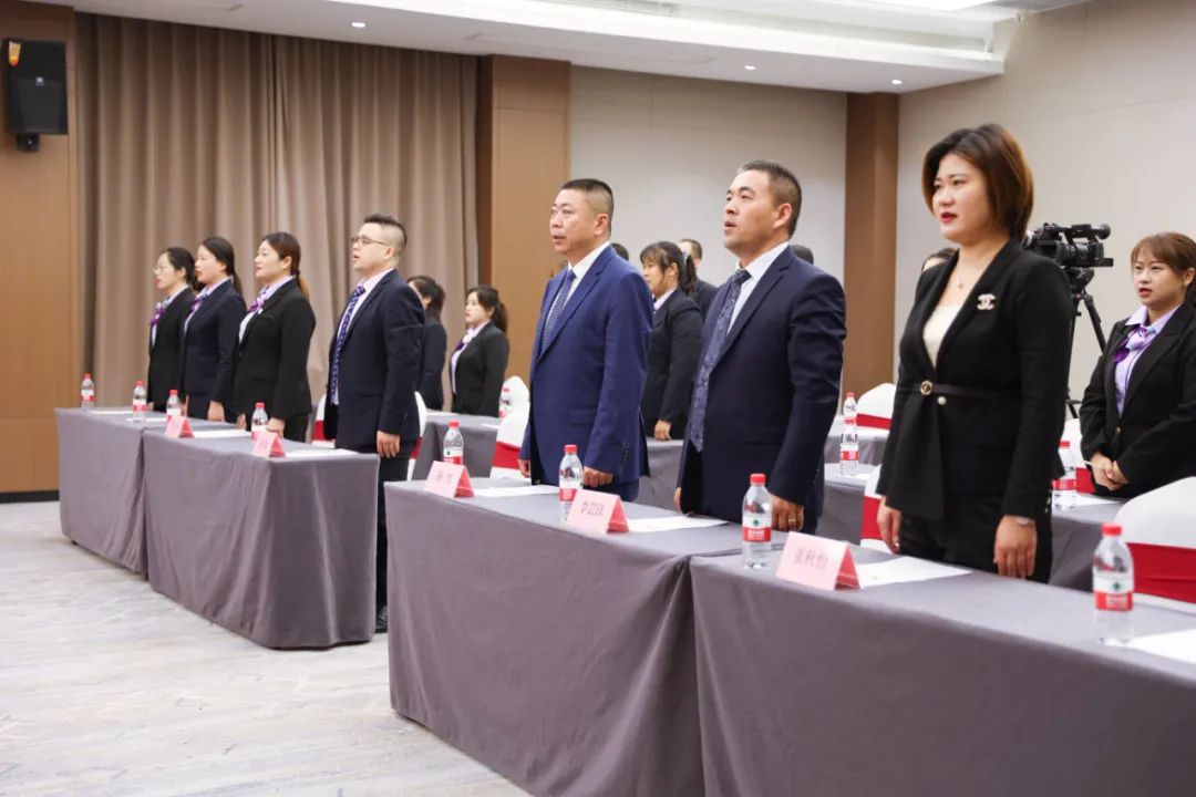 本次会议首先以庄严而又隆重的升国旗仪式开启,会场所有人员面向大屏幕缓缓升起的国旗肃立致敬,歌唱雄伟庄严、激昂澎湃的国歌。