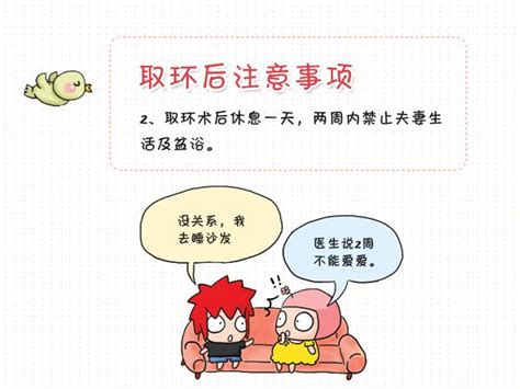 第一,患者在取环后的一个月之内不能同房,不能洗盆浴,避免引起上行感染。